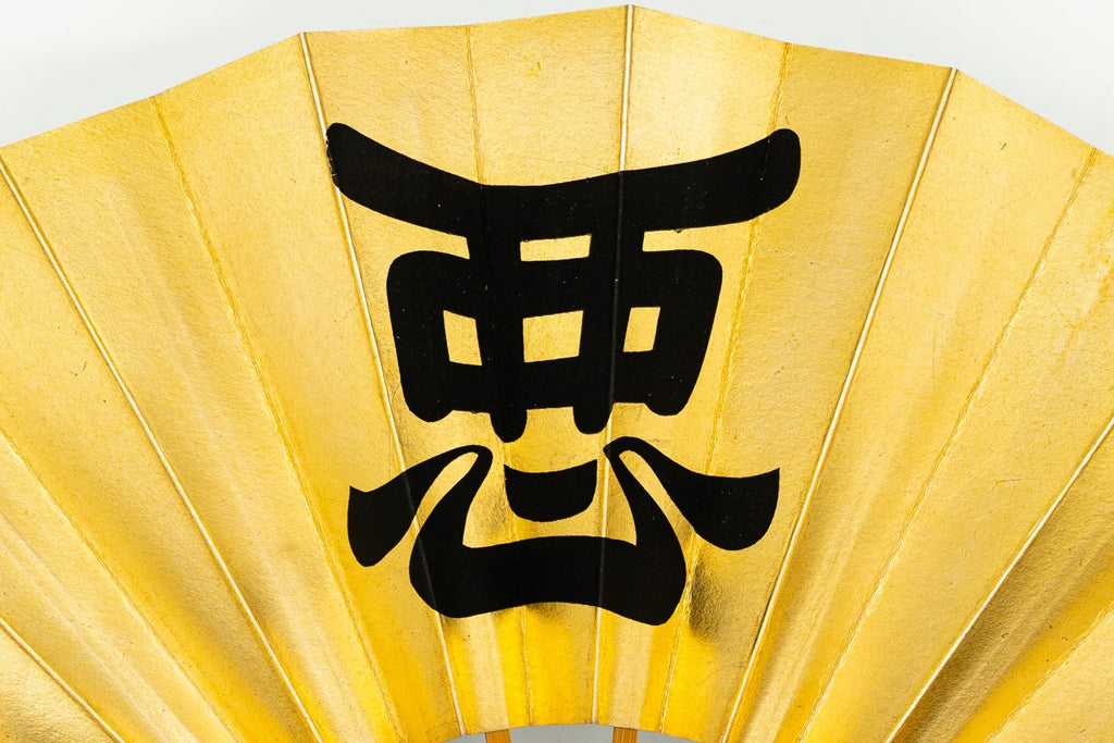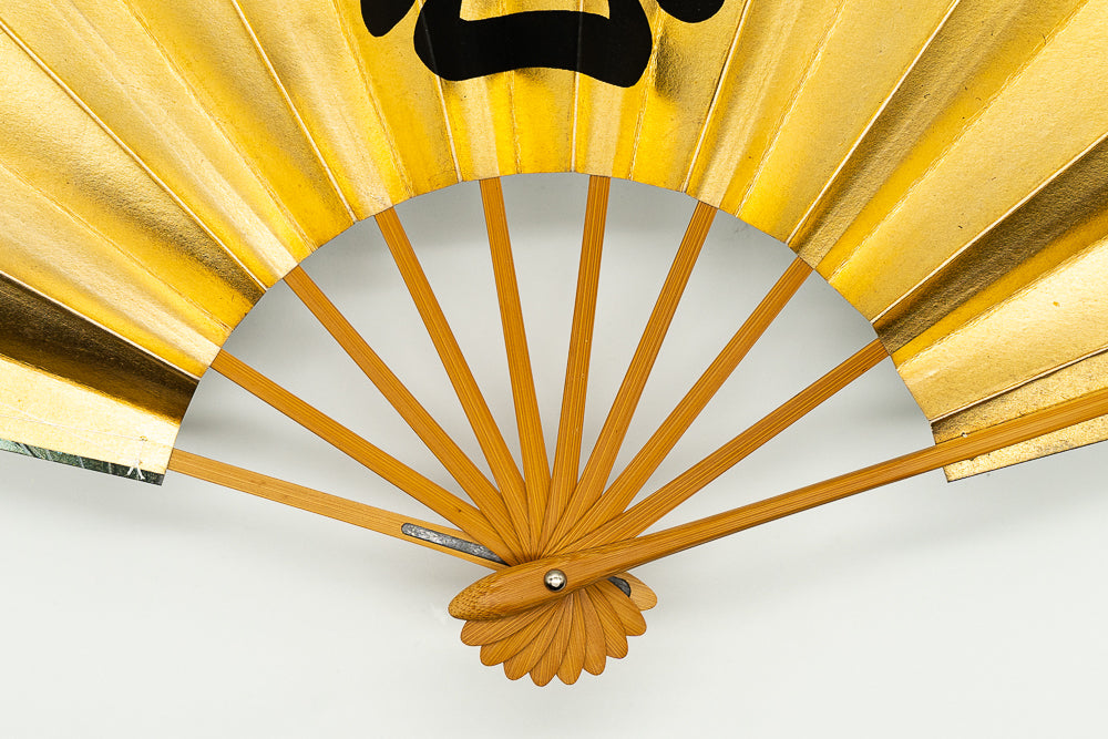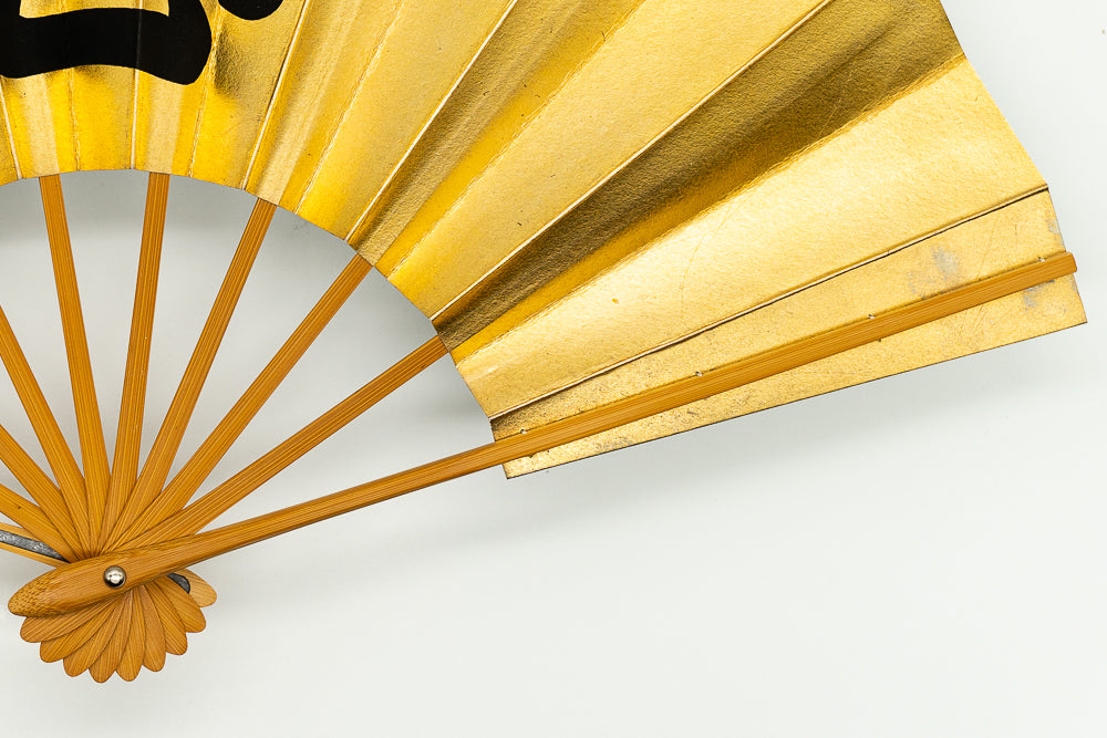 【ビンテージ品】上質な金箔地に黒で悪の文字を描いています。日本舞踊の演目「神田祭」で使用される絵柄です。裏面は銀箔地にさざ波が手描きで描かれています。