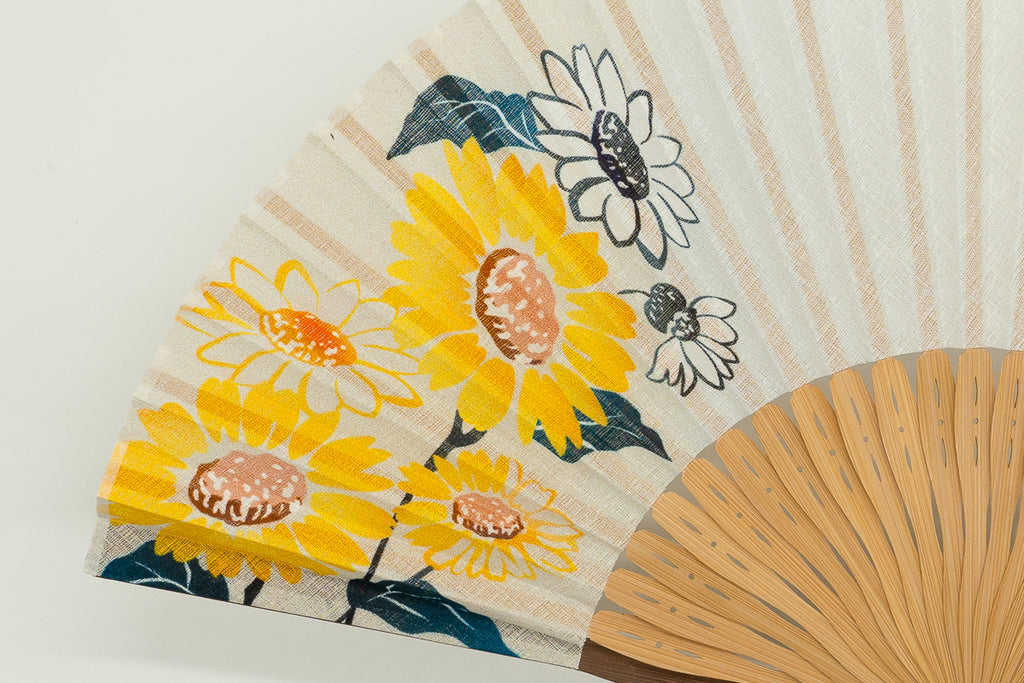 Bright sunflowers stand out against the natural texture of the cotton fabric. This item radiates a cheerful vibe that will lift your spirits just by looking at it.