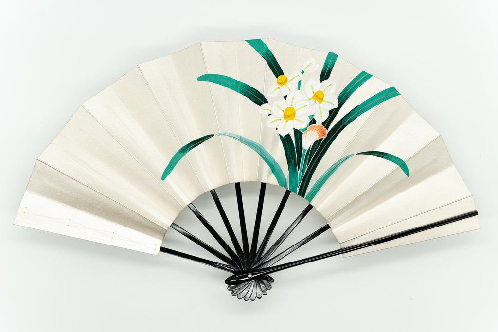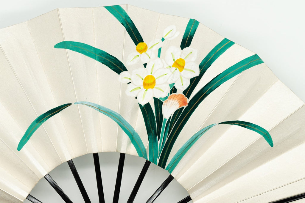 銀ハキ地に大きめの水仙を手描きで描いています。上品で落ち着いた雰囲気です。