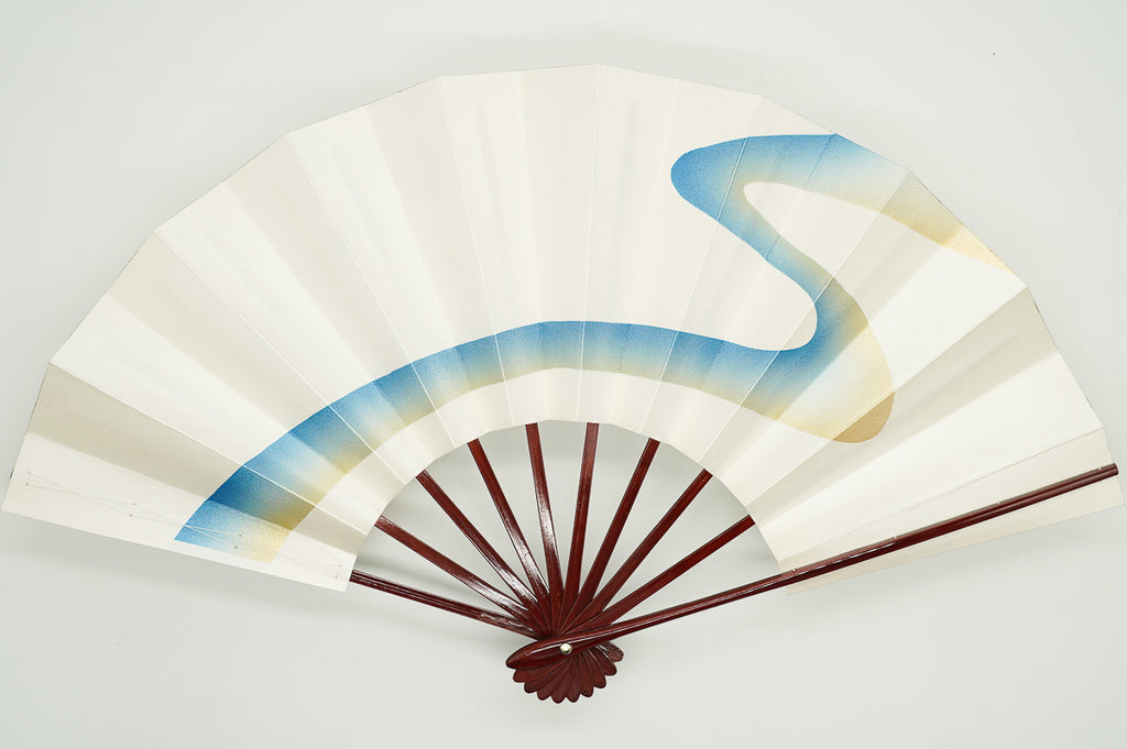 パール地に金と明るいメタリックブルーグラデーションで流水を描いています。