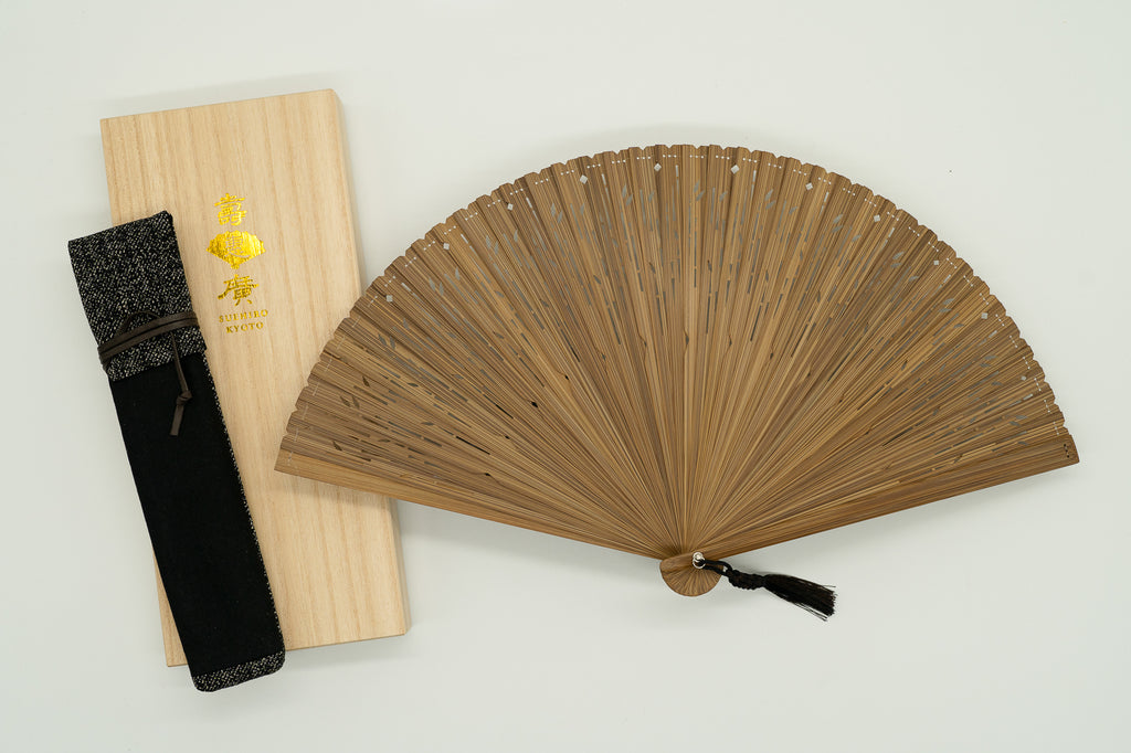 竹を抽象化した抜き文様が涼やかな光と影を描き出し、和の雅やかさと凛とした佇まいを醸し出しています。男女問わずユニセックスでお使い頂けます。