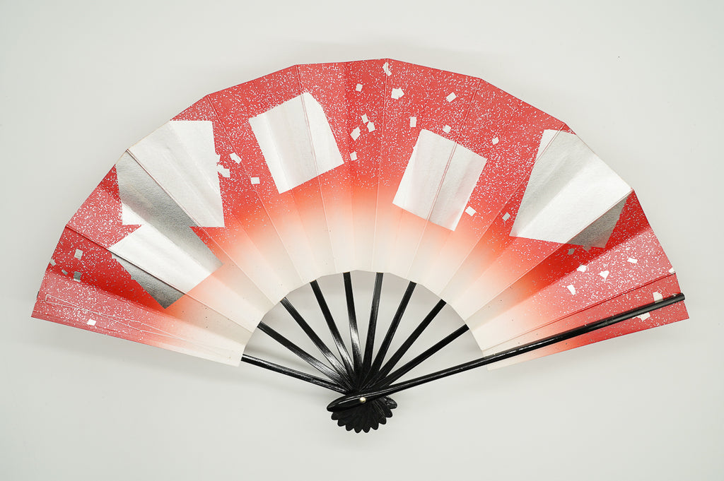 朱色ぼかしに銀の色紙をあしらっています。明るく華やかな雰囲気です。